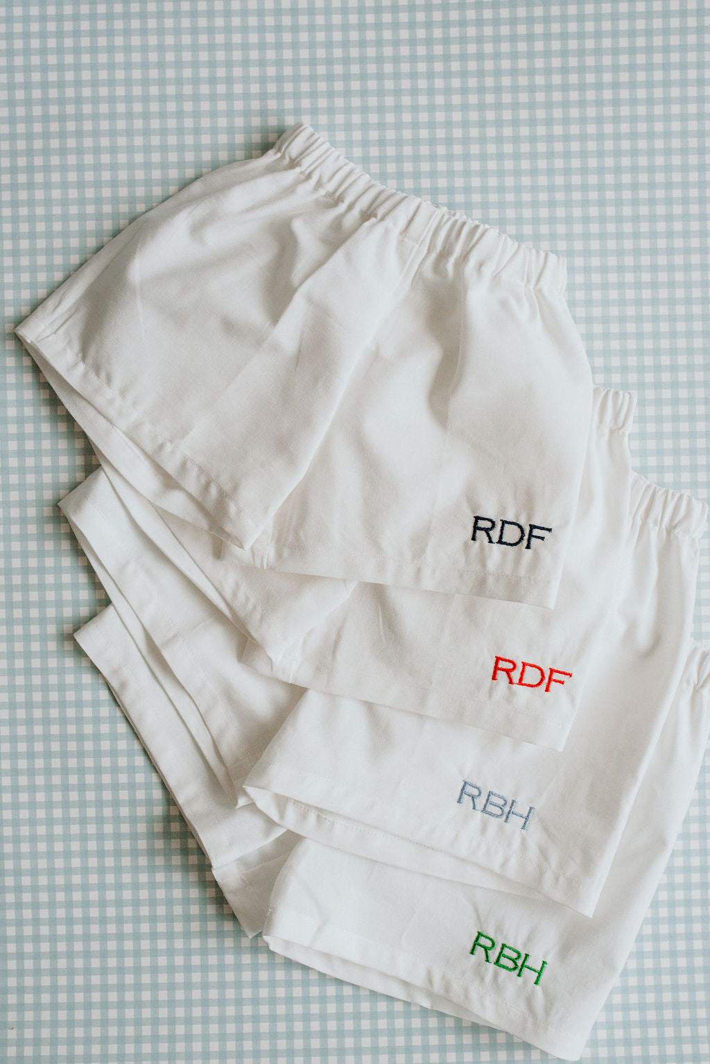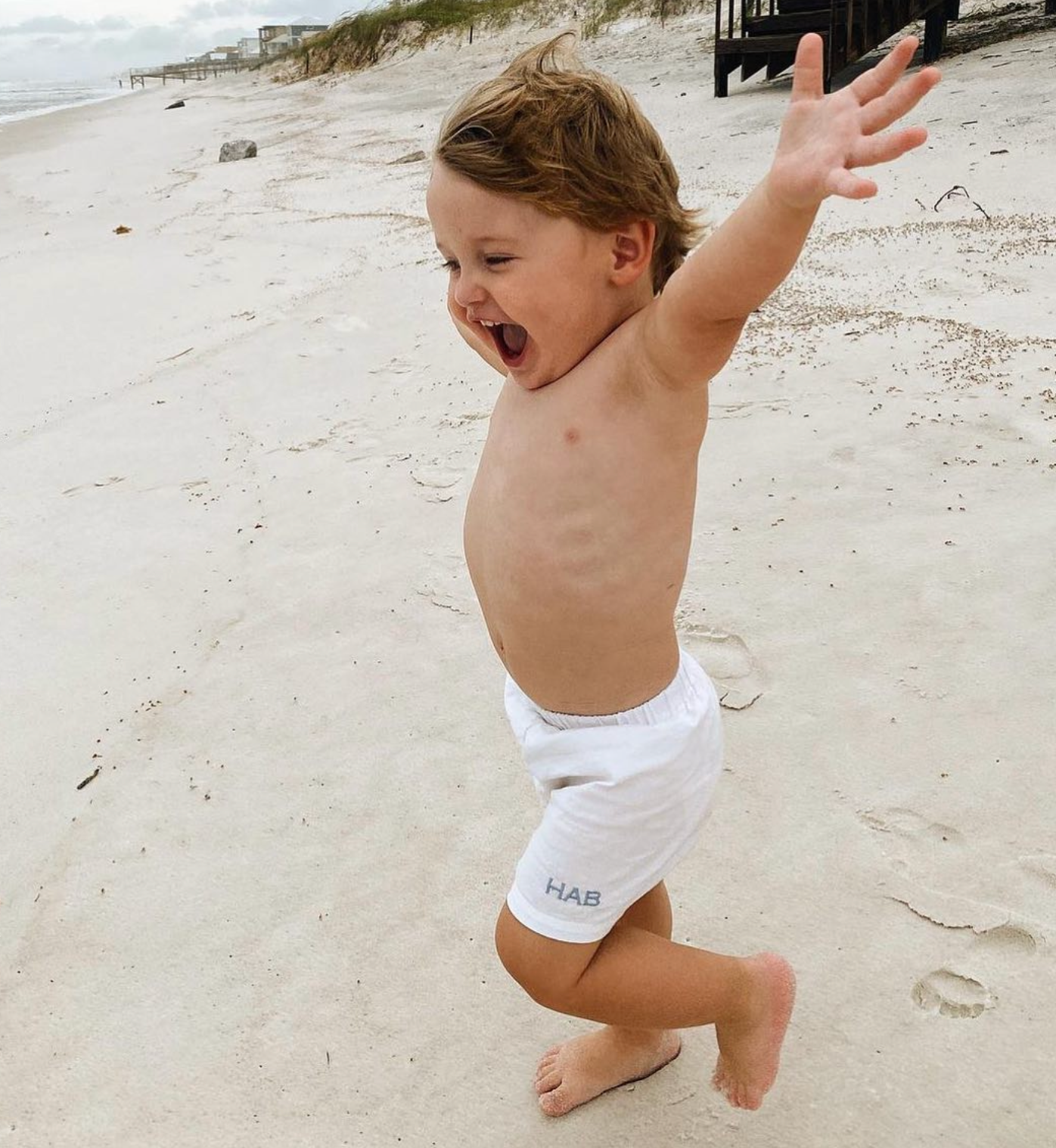 Classic white shorts to wear every day. Add your little one's initials or name. Perfect for boys and girls. All shorts have an elastic waist and are cotton. Handmade in the USA!