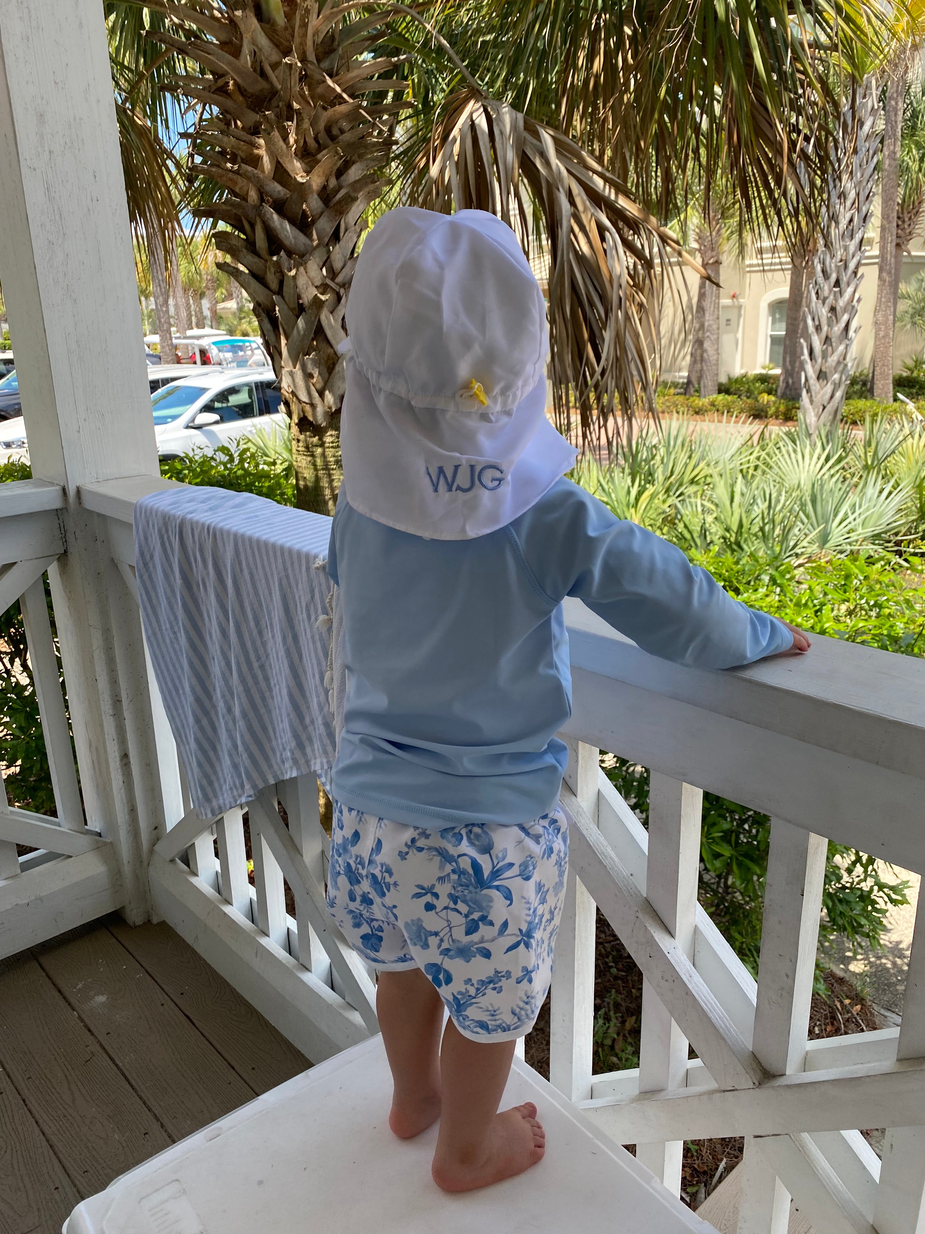 Babies skin is more vulnerable to sunburn than adult skin, therefore, special care must be taken to ensure that it's well protected from the sun. Our solid Brim sun protection hat is made out of a water-resistant upf 50+ fabric; we have included a tie closure under the chin