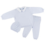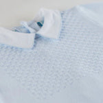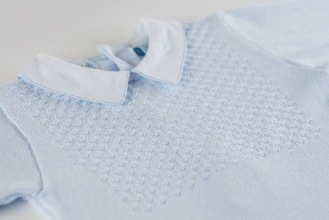 Every little prince deserves to be dressed like one, that's what we believe. Choose this classy two piece set for your little guy when you want to dress him in his best - so sweet and stylish, and it even comes with a matching hat! This little boys outfit features a beautiful diamond knit design on the top of the shirt as well as on the hat. Includes ribbed knit along the edges and a sharp white pique collar with delicate baby blue piping. Perfect for holidays, special days, and every day!