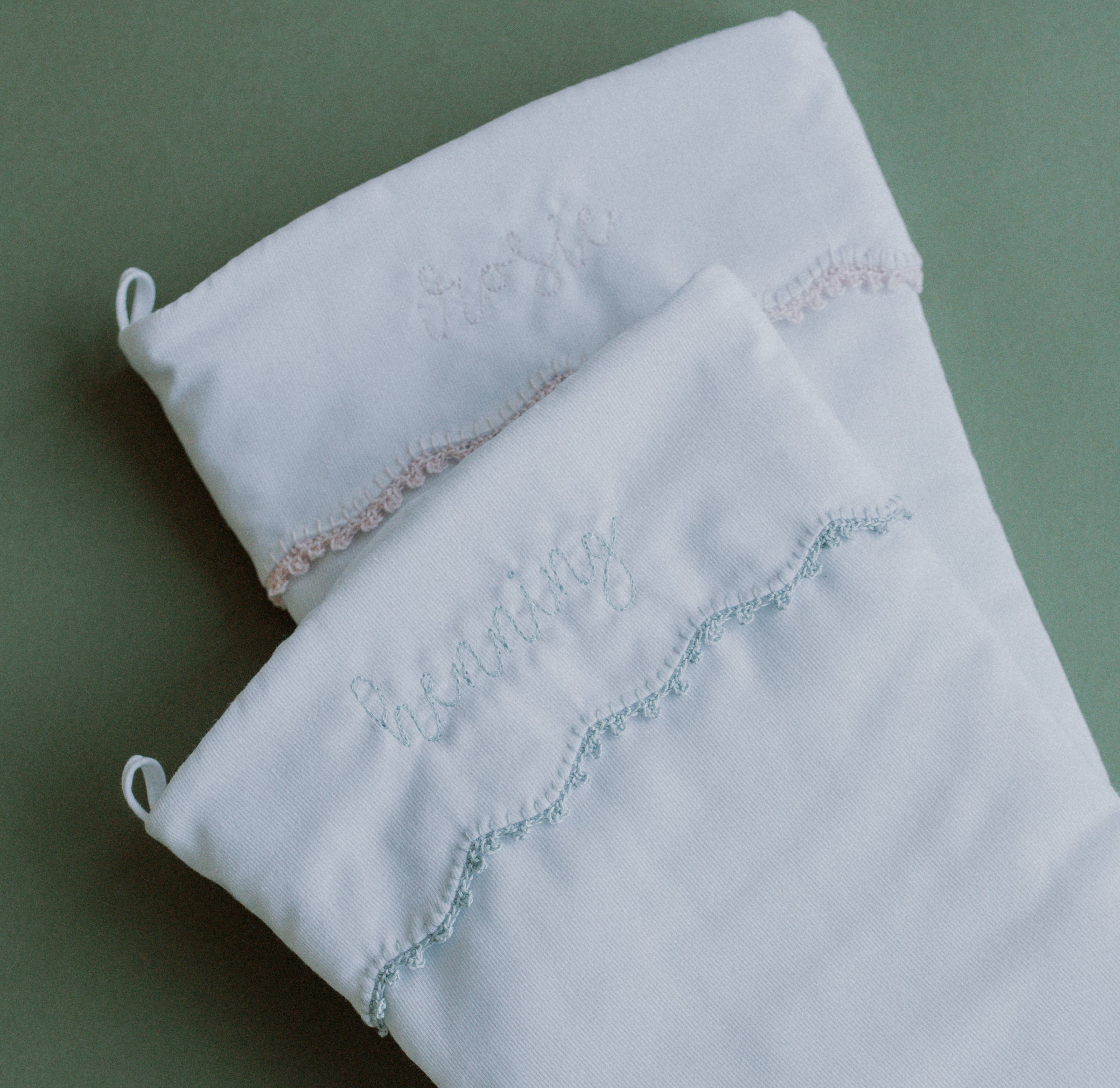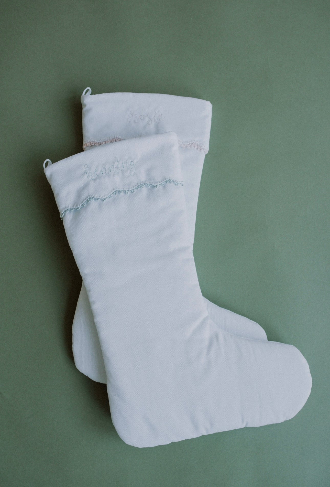 Making the holidays even sweeter with these Christmas stockings. If you choose to have your stocking embroidered, it will be the same color as the trim.