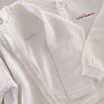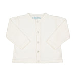A cardigan as versatile as it is classy! With its soft and warm knit, this cardigan will keep your little one warm and cozy all the time. The perfect piece for layering on top of holiday outfits, special occasion sets, or everyday layette. Crisp, cute, and oh so classy!