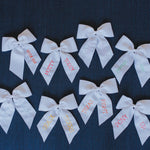 The classiest hair bow (with free personalization) to complete your little one's outfit for Game Day and beyound!. Choose from 1 of our 2 sizes and pick your thread color for embroidery. Each bow has a clip on the back for easy styling.