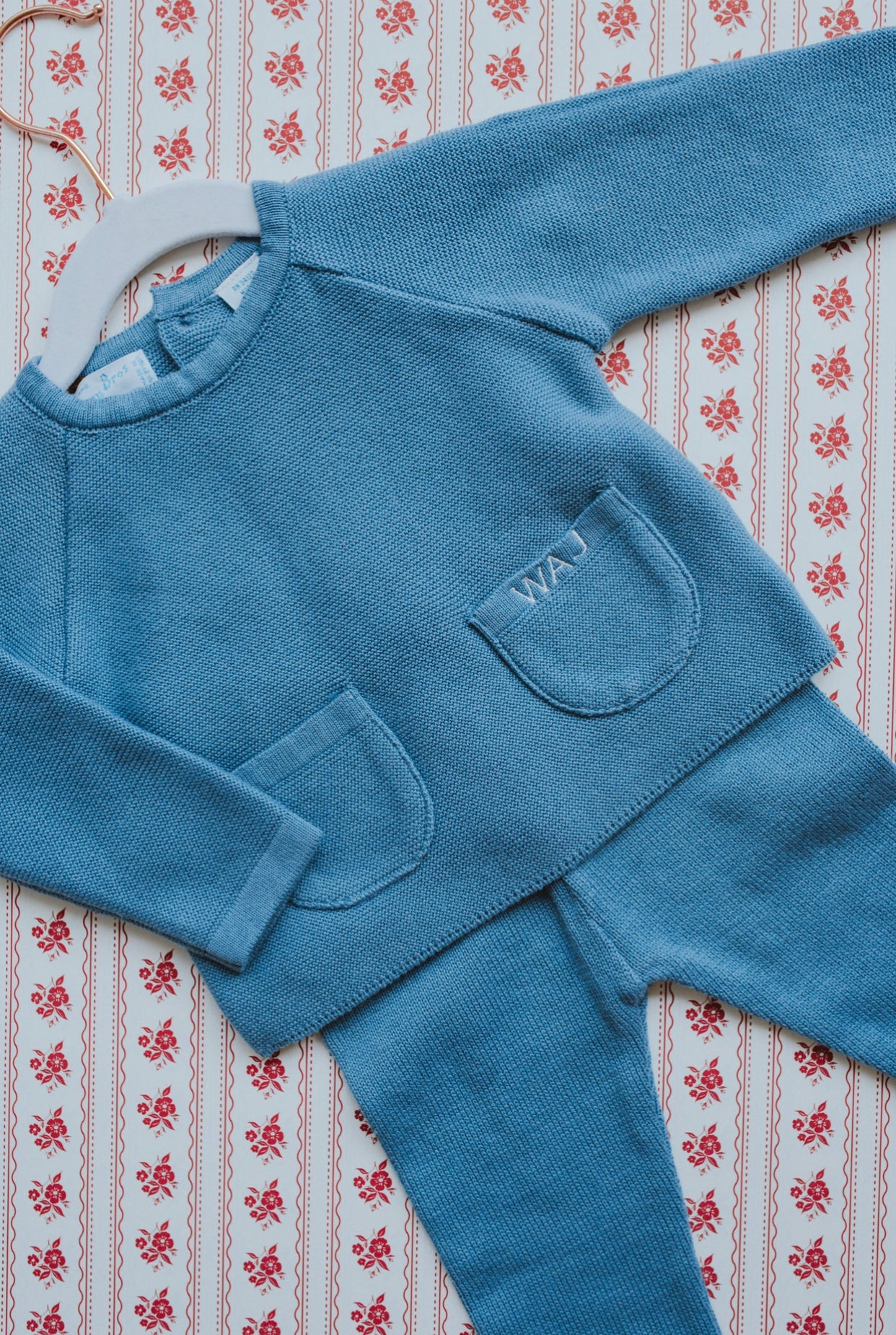 Looking for a super versatile outfit your baby can wear in all weather while still looking cute? Our new Knit Long Set is just for you! This 2-piece knit set will look perfect on your baby boy or girl, winter, spring, summer, or fall. Embroidery is done on the pocket.