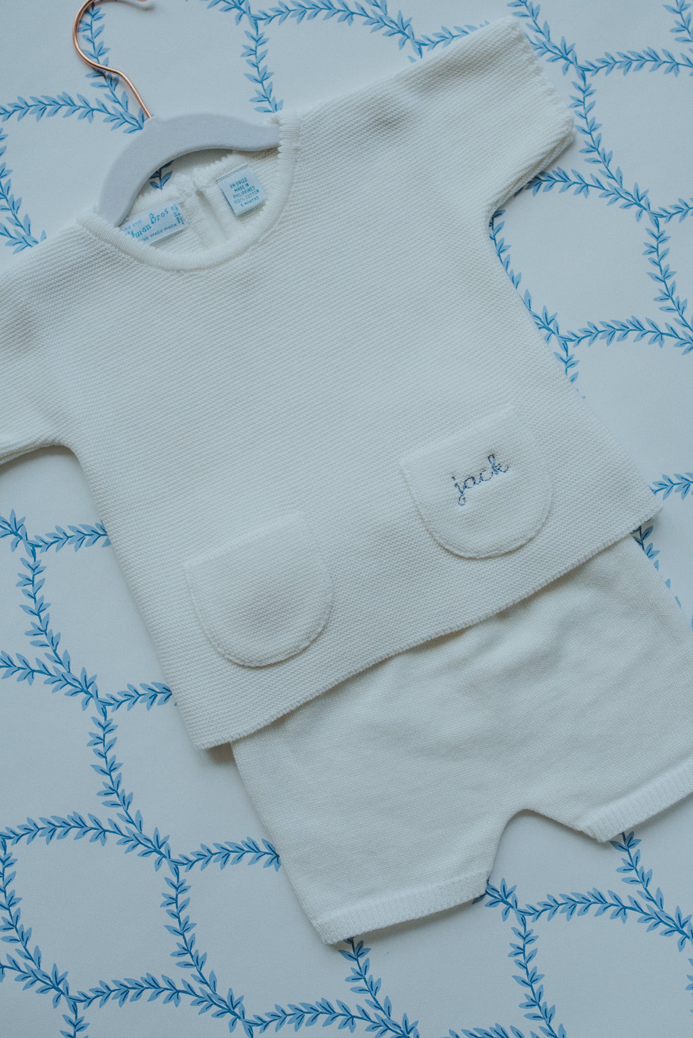Looking for a super versatile outfit your baby can wear in all weather while still looking cute? Our new Knit Long Set is just for you! This 2-piece knit set will look perfect on your baby boy or girl, winter, spring, summer, or fall. Embroidery is done on the pocket.