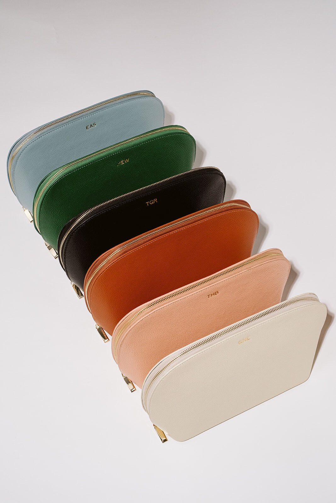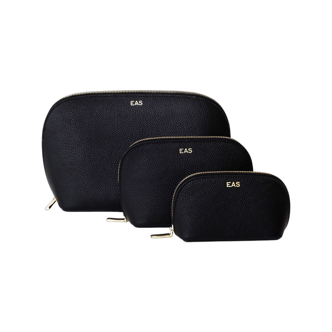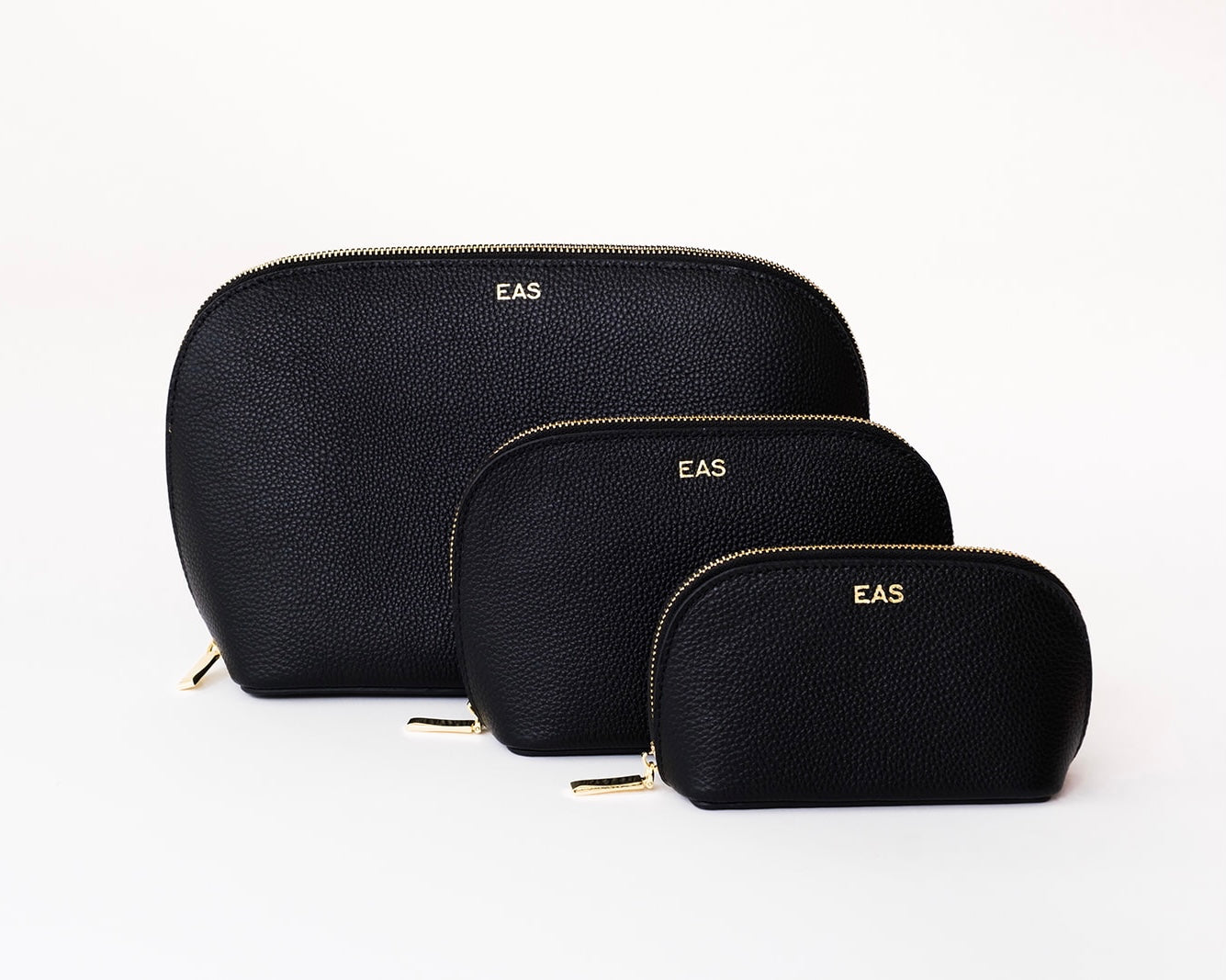 Introducing our new pebbled leather pouches. The perfect travel companion to organize your beauty essentials. The best part? You can personalize with your initials (complimentary!).