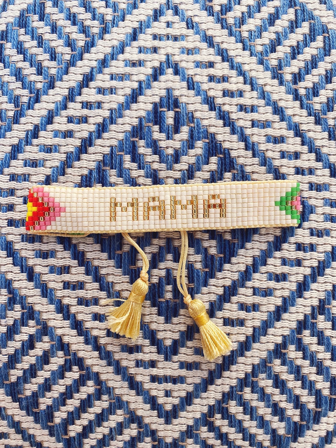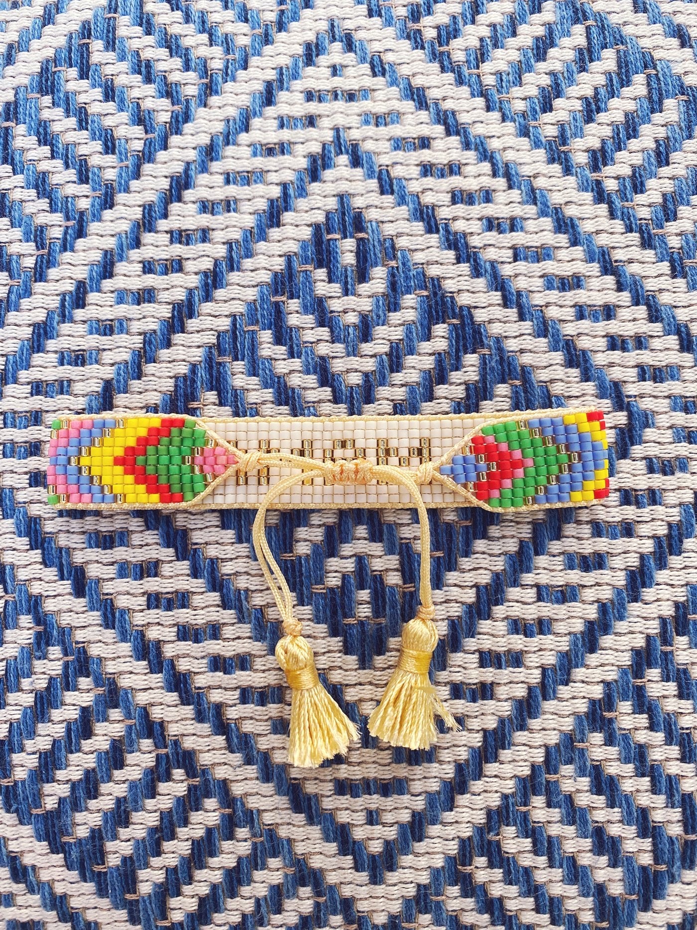 *These beaded bracelets are delicate due to their handmade construction and delicate materials like fragile glass beads and handcrafted tassels. Please treat your bracelet with extra TLC. Avoid banging your wrist against surfaces, washing dishes and swimming in your bracelet, and throwing the bracelet in your handbag.