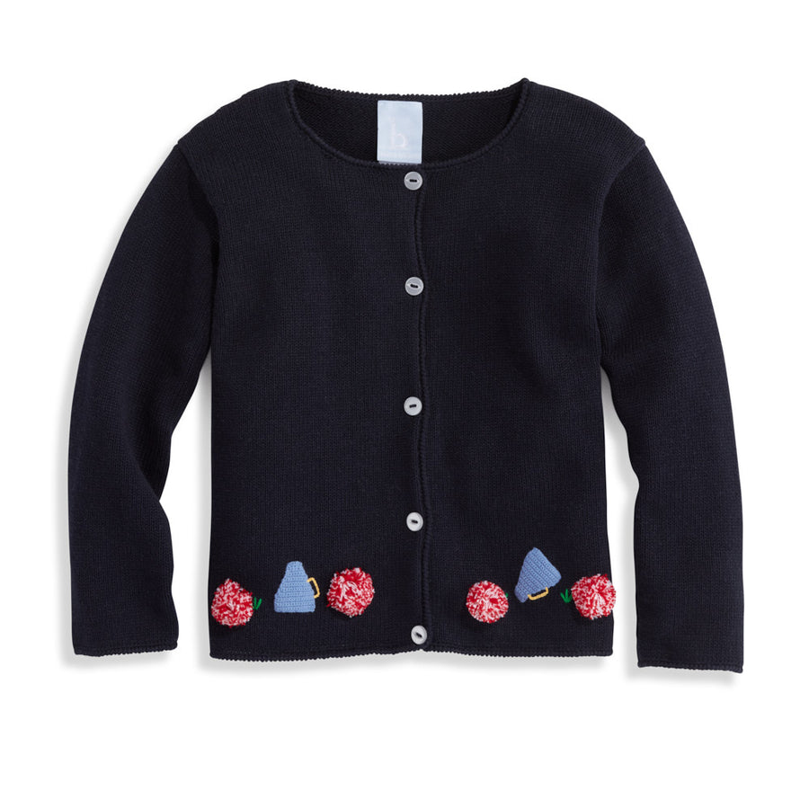 You won't believe the detail! Each applique that adorns our signature cardigans is crocheted by hand. Even the sweaters themselves are hand-loomed! 100% cotton; machine wash. Sizes 12m-5y. For best results, lay flat to dry then fluff on low heat. Please note, we hid an extra button inside each sweater for those just-in-case moments.