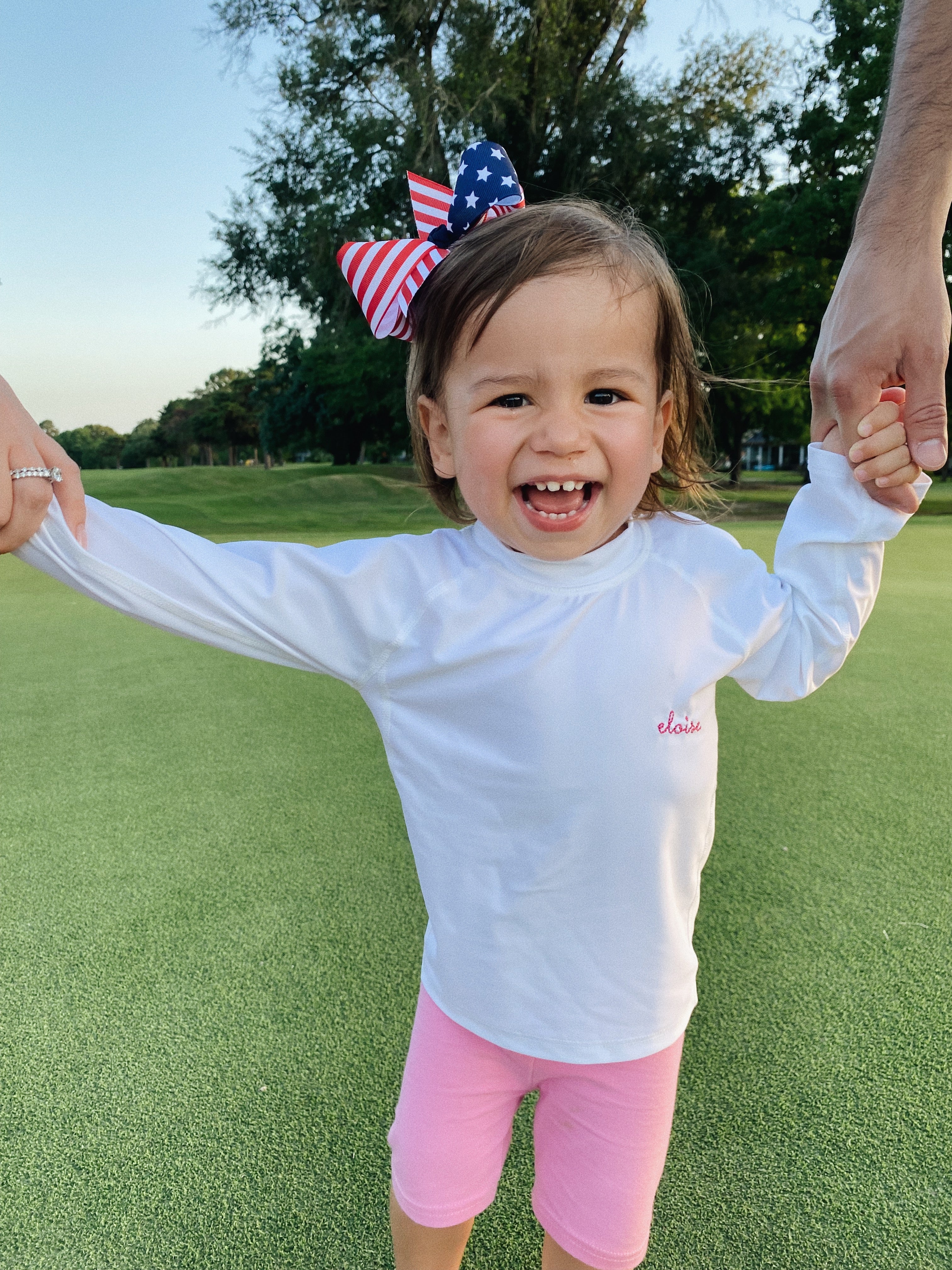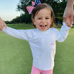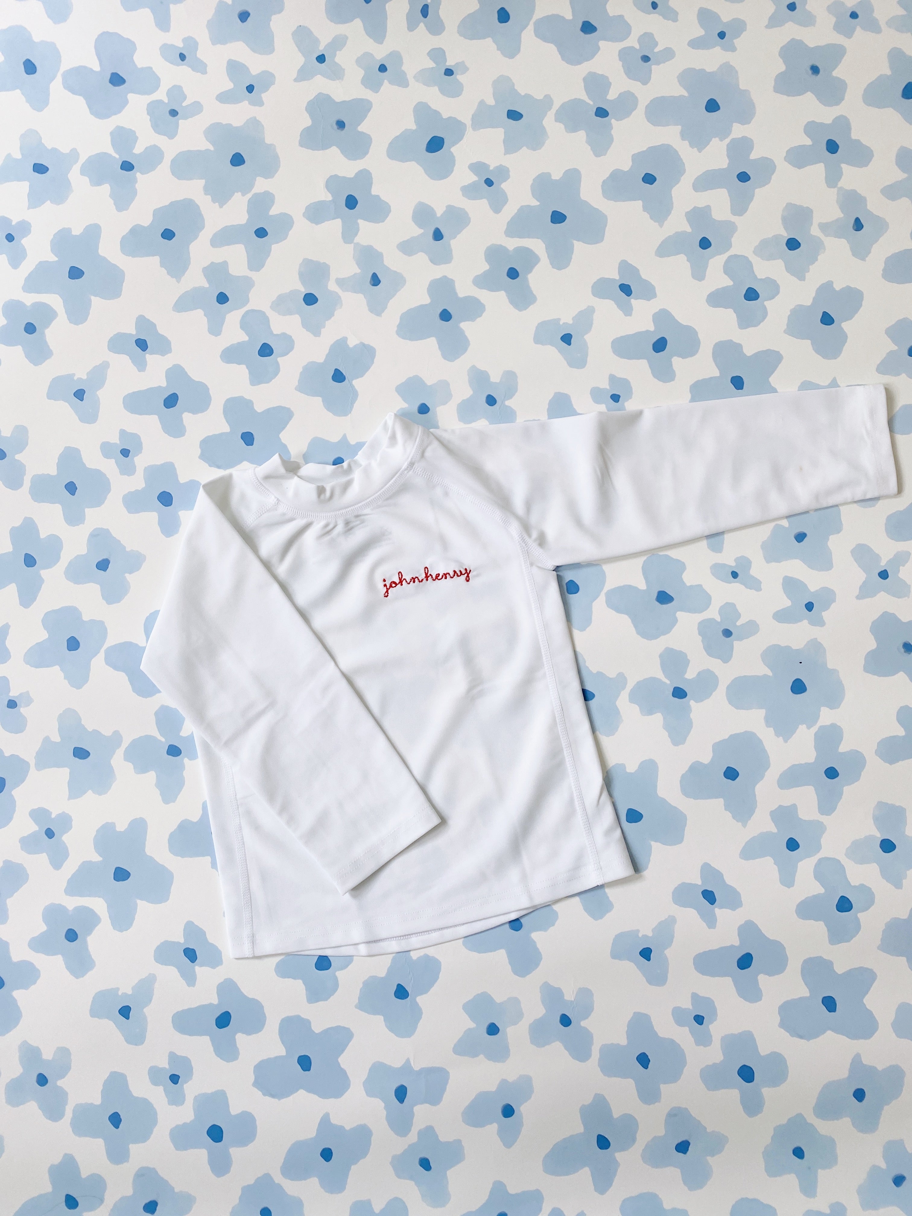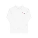 Protect your little one in the sun with this adorable UPF50+ Rash Guard swim shirt. Great for both girls & boys with many thread options for the embroidery. Please note, only the 0/6 month has buttons on the back.