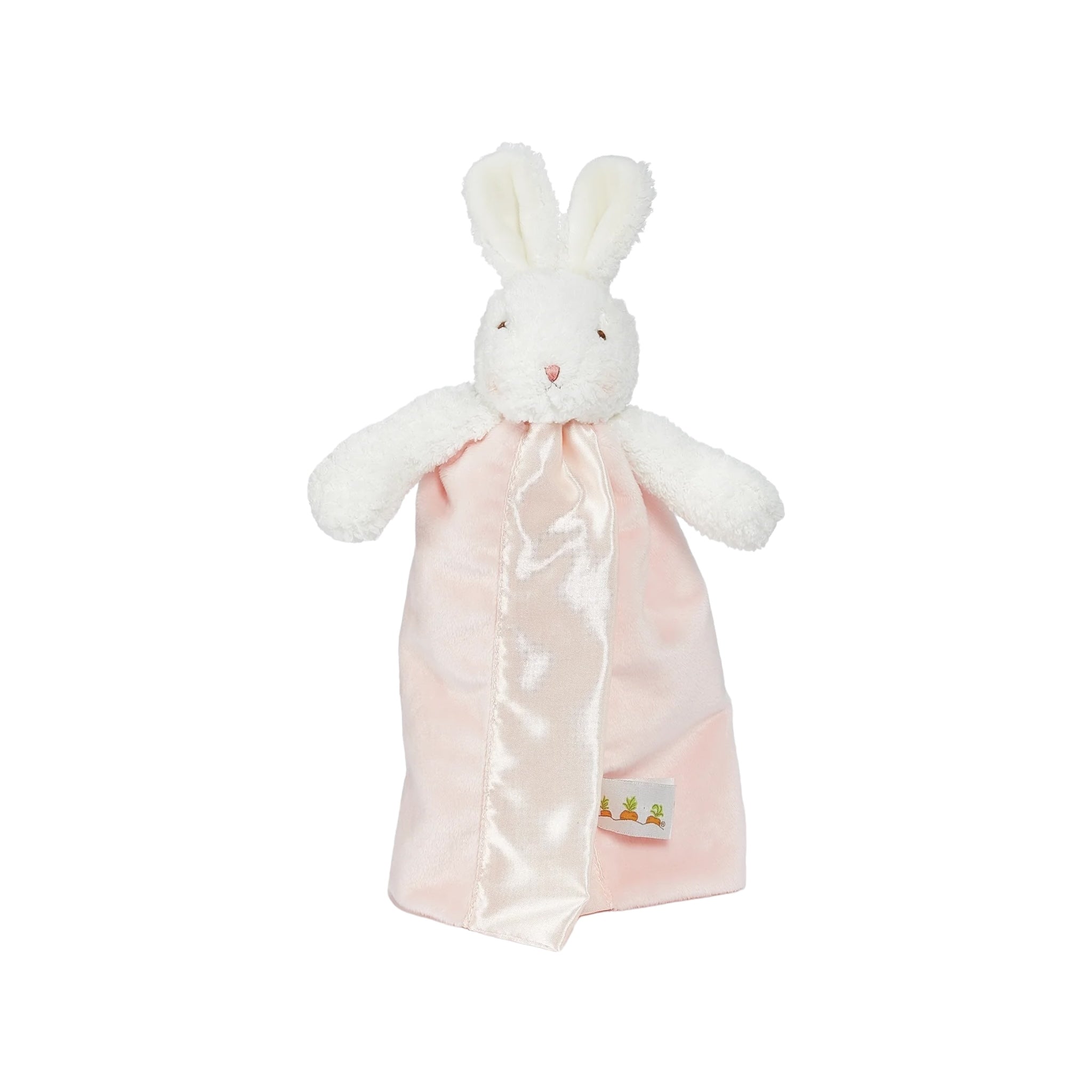 This favorite security blanket is a plush floppy eared bunny with handcrafted, baby-safe embroidered face and a snuggly soft white velour split blanket, lined and edged in silky satin. Signature three carrot tag for little one's fingers.
