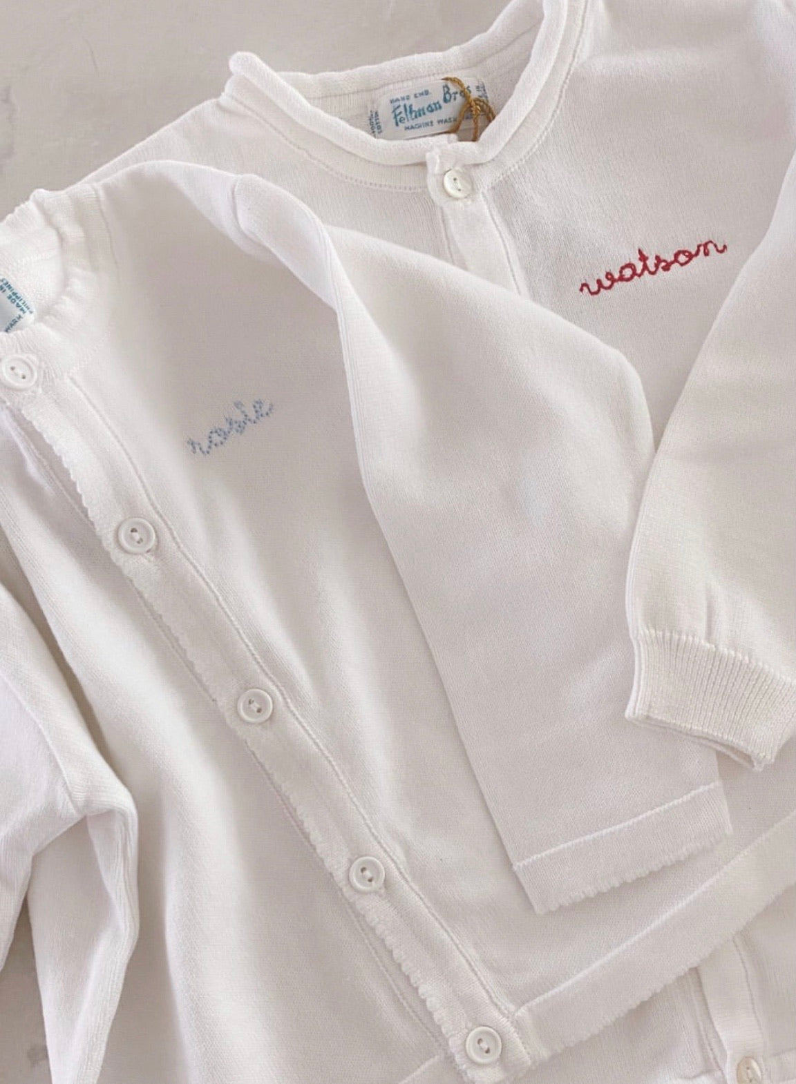 Meet an adorable knit cardigan, just right for keeping your little one warm while still looking fashionable and classy! Features ribbed sleeve cuffs and rolled over edges along the neck and hem. Perfect for layering over an outfit for an extra bit of warmth, or as a beautiful top of its own!