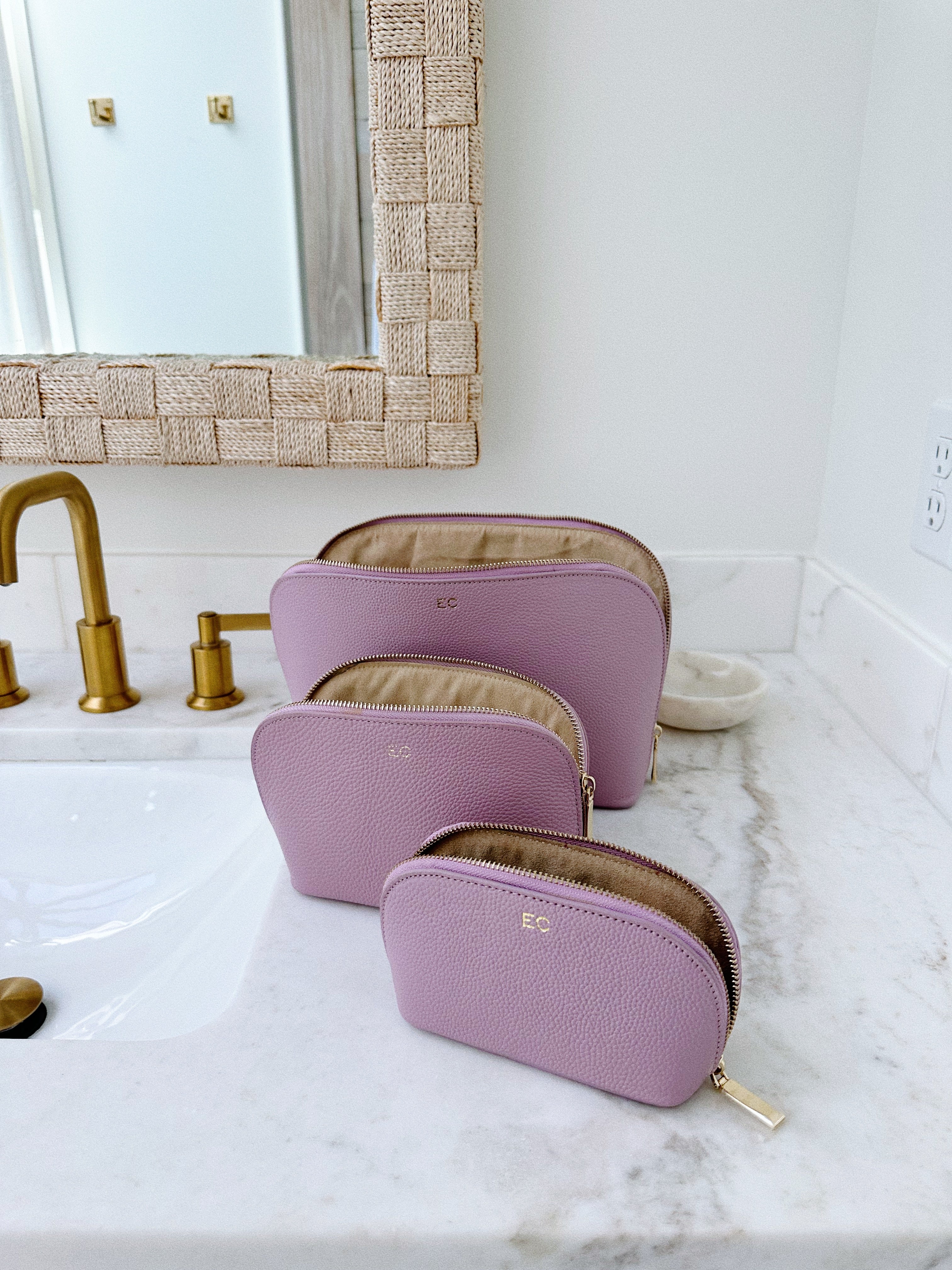 Introducing our new pebbled leather pouches. The perfect travel companion to organize your beauty essentials. The best part? You can personalize with your initials (complimentary!).